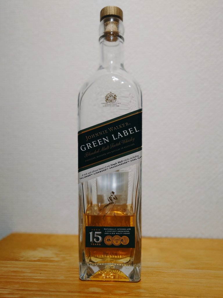 通称ジョニ緑は最低15年以上熟成したモルト原酒のみで作られたブレンデッドモルト。キーモルトはタリスカー、リンクウッド、クラガンモア、カリラです。実売価格は6000円ほど。