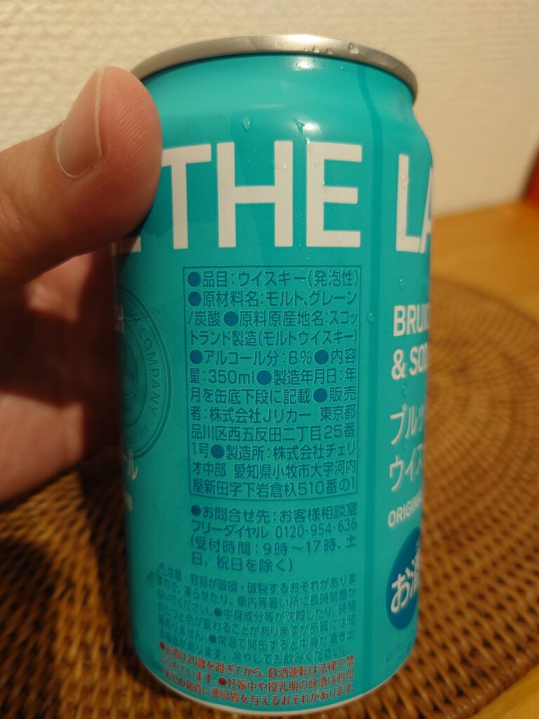 アイラと言ってもブルックラディ蒸留所はノンピート(煙くない)タイプの「クラシックラディ」、ヘビーピートタイプの「ポートシャーロット」など原酒を作り分けています。缶の色合い的にクラシックラディがベースのオリジナルブレンドじゃないかと言われています。
